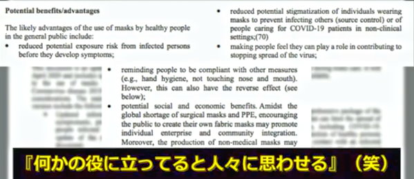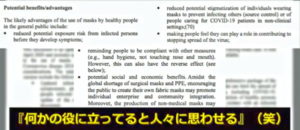 マスクに予防効果は認められないとするWHOの ”それでもマスク着用要請” の目的は、「社会的スティグマをなくし、従順にさせるため」「マスクで儲けられる」などと6月の時点で明記されていたもよう。