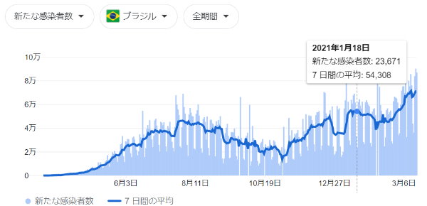 900万人以上にワクチン接種が完了したブラジルで、接種開始後1ヵ月半の時点で「コロナの死者数が過去最大」に