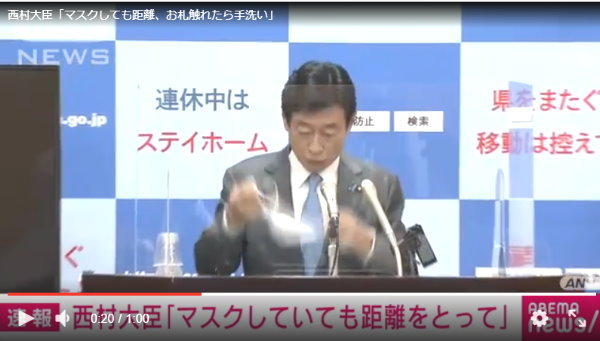 西村康稔担当相は「屋外でマスクを付けていても感染が確認される事例の報告が相次いでいる」と呼び掛けた。 マスクは漏れ漏れ。でも普段の満員電車ではクラスターが起きない。都合良く時期や場所を選ぶのがコロナウイルス。
