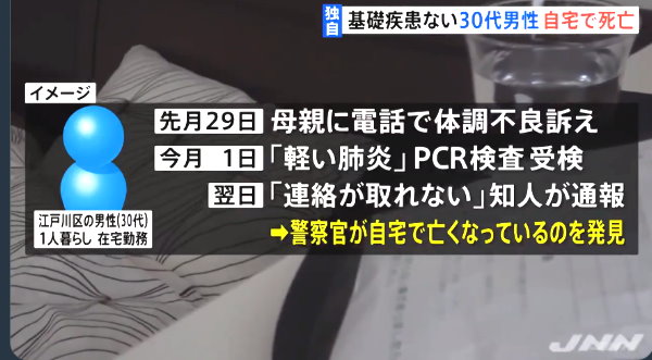 基礎疾患がなく、先月25日に1回目のワクチン接種をしていた三十代の男性が、体調急変し急死しても 新型コロナ感染症のせいにされてる。 ワクチン死でしょうが!?