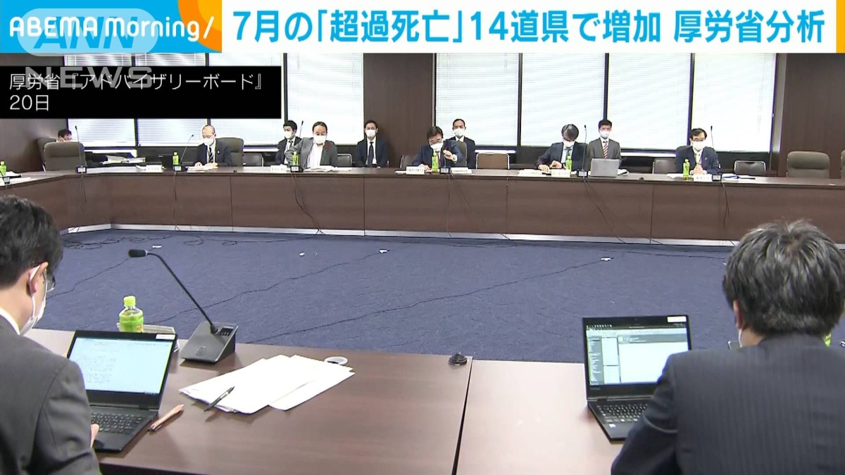 国立感染症研究所は新型コロナの第5波が広がっていた7月に死亡した人の数が14の道県で平年より多かったという分析結果を発表しました。 分析結果は、厚生労働省で開かれた新型コロナの専門家会合で発表されました。 今年7月に死亡した人は過去4年間のデータから予測された死亡者数よりも14の道県で多かったということです。