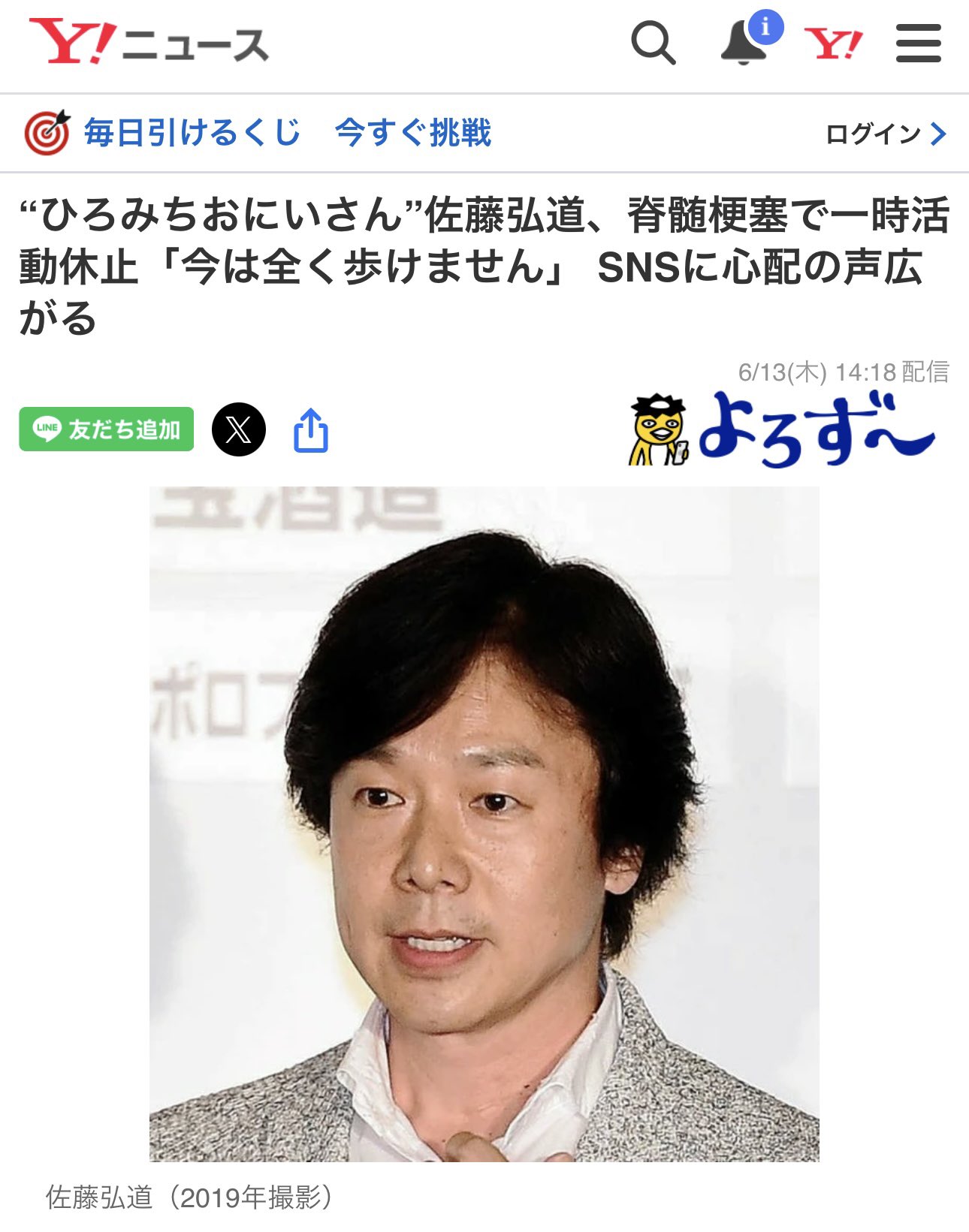 3回接種の佐藤弘道さん脊髄梗塞で活動停止