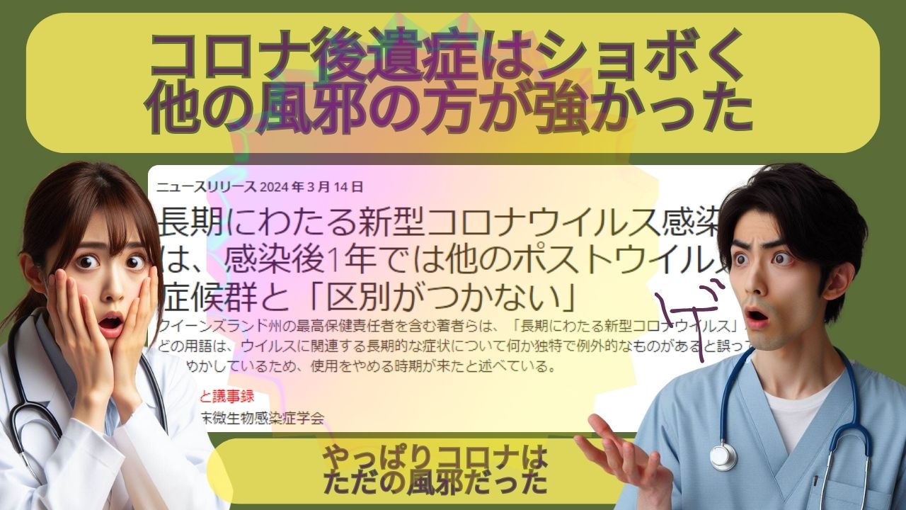 コロナ後遺症はインフルなどほかの風邪より期間も短くショボいことが研究で明らかに。