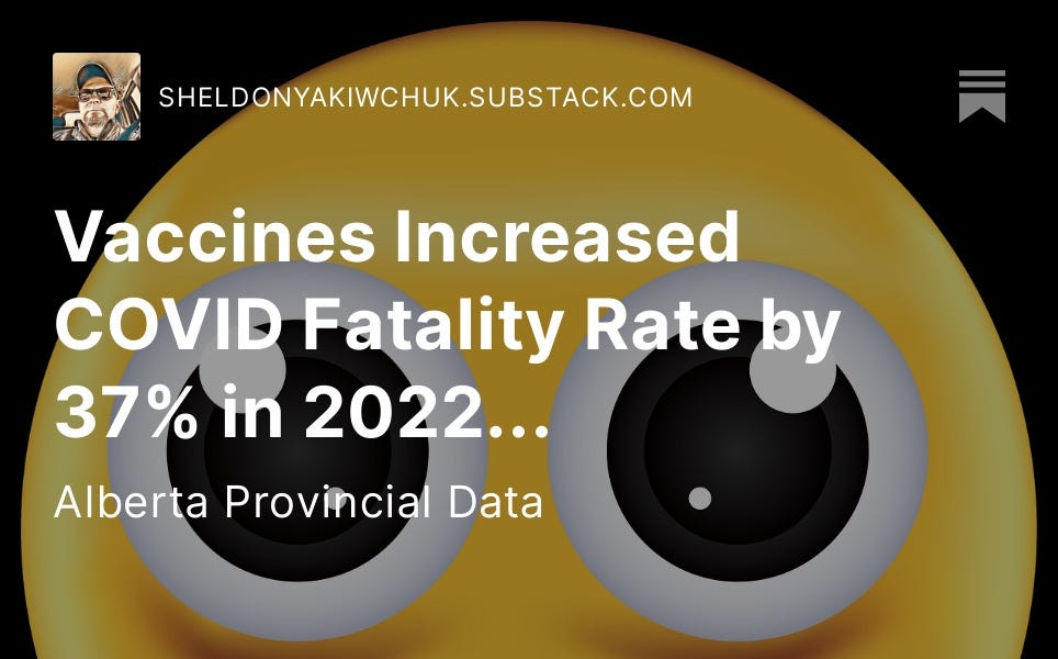 カナダの調査でわかったのが、新型コロナワクチンの残念な効果。 コロナに罹りやすくなり、感染したら死亡率も上がる。 陰謀論の噂どおり、免疫力が低下することも明らかに。 接種でワクチン後遺症などの健康被害の確率も高まるだけでなく、たの病気にもかかりやすくなる。 追加接種をすれば目先の回避はできるが、打つほどドツボというマッチポンプ。 ワンチャン、2度とワクチンに騙されて接種しないこと。 そして接種後の免疫低下期間を乗り越えることで、回復の可能性がある。かも?カナダアルバータ州:弱毒株のオミクロン。感染者は前年より5万人も減ったのに、死亡者は増えていた。罹患させる。弱らせる。死ぬ。それがワクチン。 Vaccines Increased COVID Fatality Rate by 37% in 2022...Alberta Provincial Data