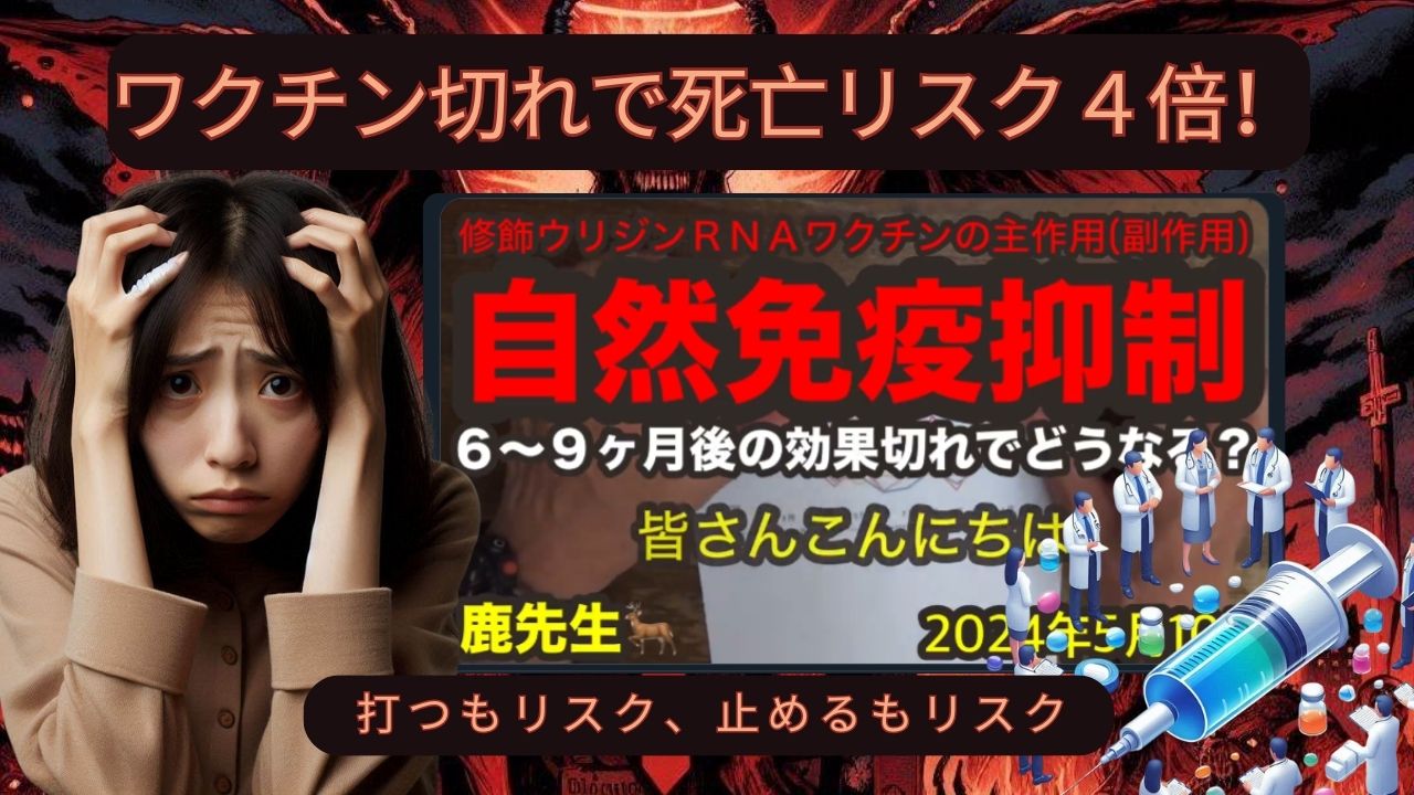 鹿先生「新型コロナウイルス修飾ウリジンRNAワクチンの主作用である自己免疫抑制作用の効果が切れる接種後6〜9ヶ月後以降に副作用である制御性T細胞(Treg)誘導と免疫抑制性IgG4抗体産生による免疫寛容によって起こる全身炎に伴う死亡が増える恐れがあります。」