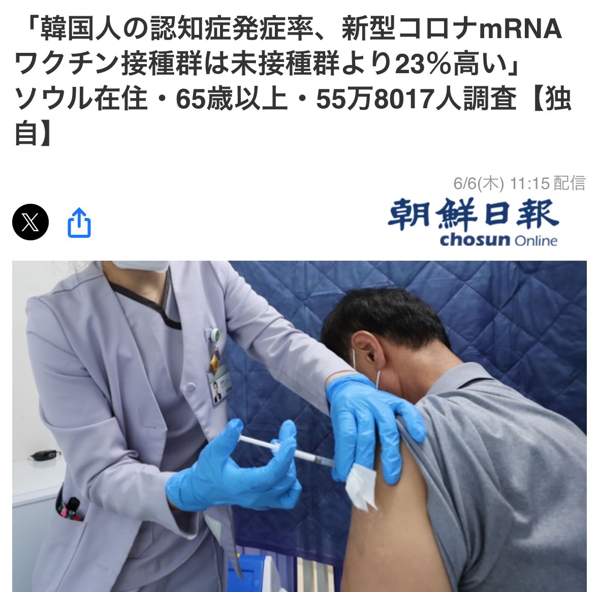 韓国の55万人もの調査でmRNAワクチン接種で認知症患者が23%の増加。#mRNA #ワクチン後遺症 #koreahttps://t.co/9dZH1AP6fK pic.twitter.com/uG2Gz9LuLX