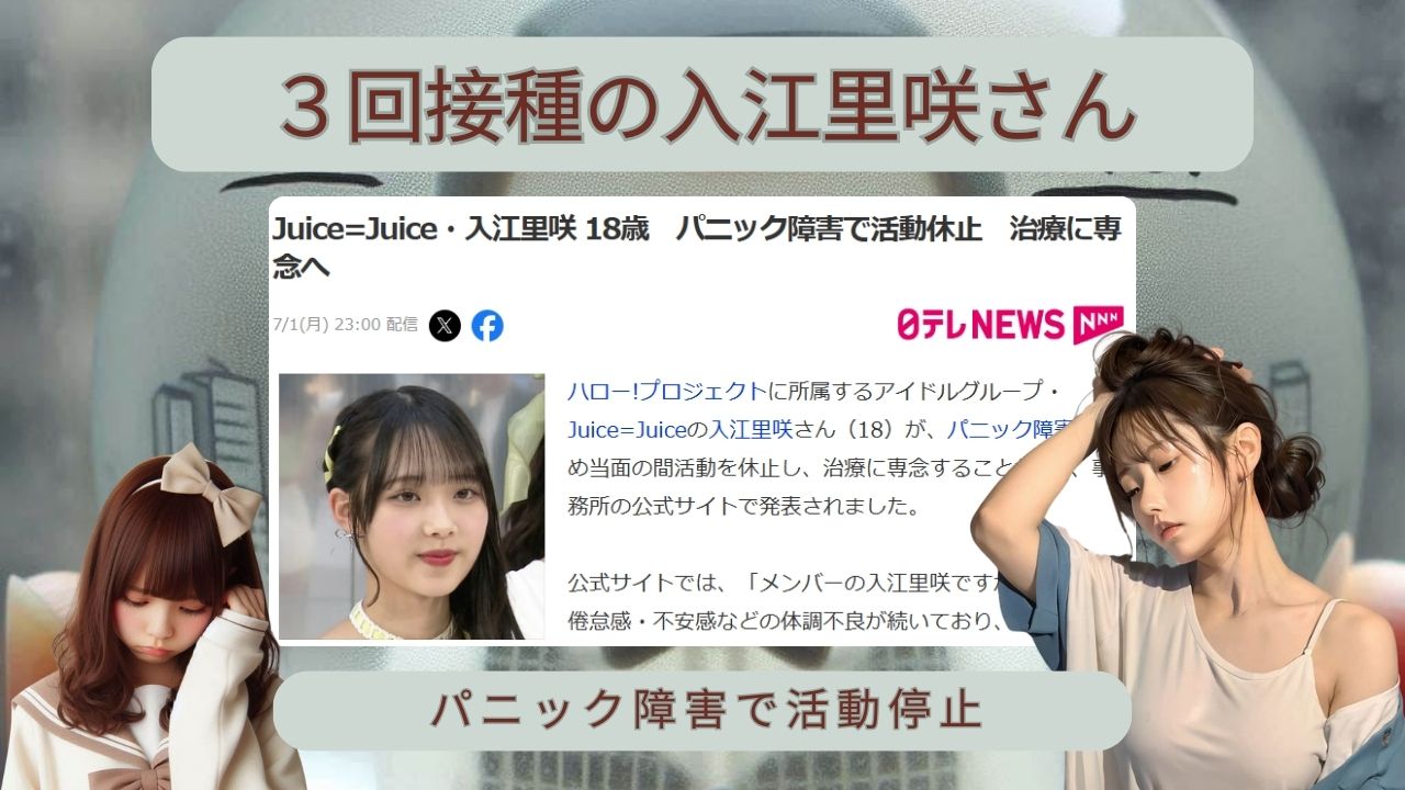 Juice=Juice入江里咲さん(18) 約半年ほど前から体調不良が続いていたが ここ最近強い不安感、息苦しさ、めまいなど 他にも色々な症状が出てきた 「パニック障害」の診断 当面の間活動を休止し治療に専念