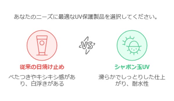 「シャボン玉UV」は、シンプルな天然成分、紫外線散乱剤のみの安心設計、心地よいバームタイプ、環境への配慮、手頃な価格という5つの軸で、従来の日焼け止めとは一線を画しています。
